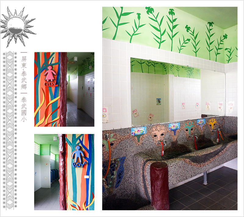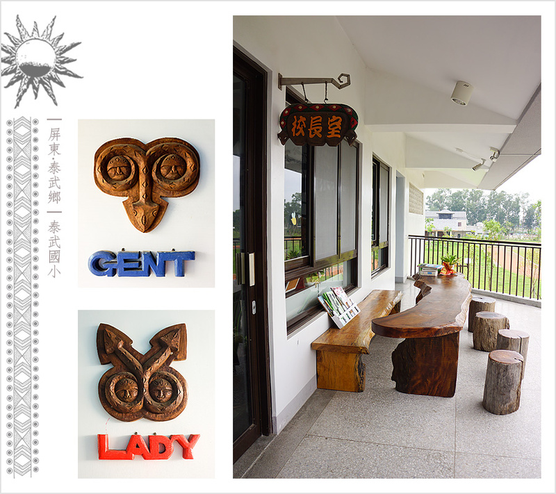 二樓教職員洗手間則是以木雕來標示男廁女廁,在在顯現排灣族工藝的精湛
