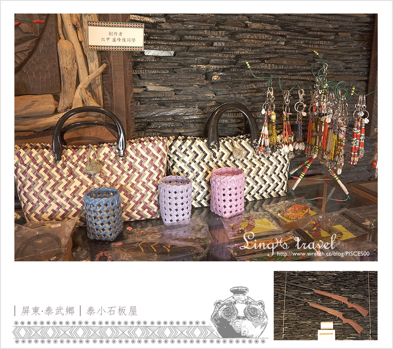 此外還有排灣族各工坊的特色工藝品:木雕、琉璃珠、織品、皮雕等,如同一個排灣傳統工藝文化市集。